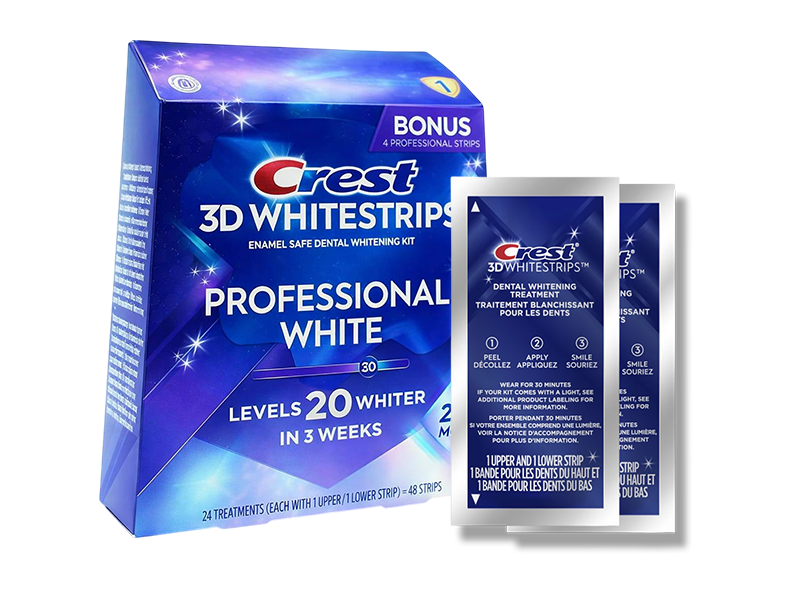 Benzile pătrund eficient în structura smalțului, îndepărtând petele dificile și impuritățile. Crest 3D Whitestrips Professional White este foarte ușor de aplicat, iar rezultatele sunt vizibile după doar câteva zile.