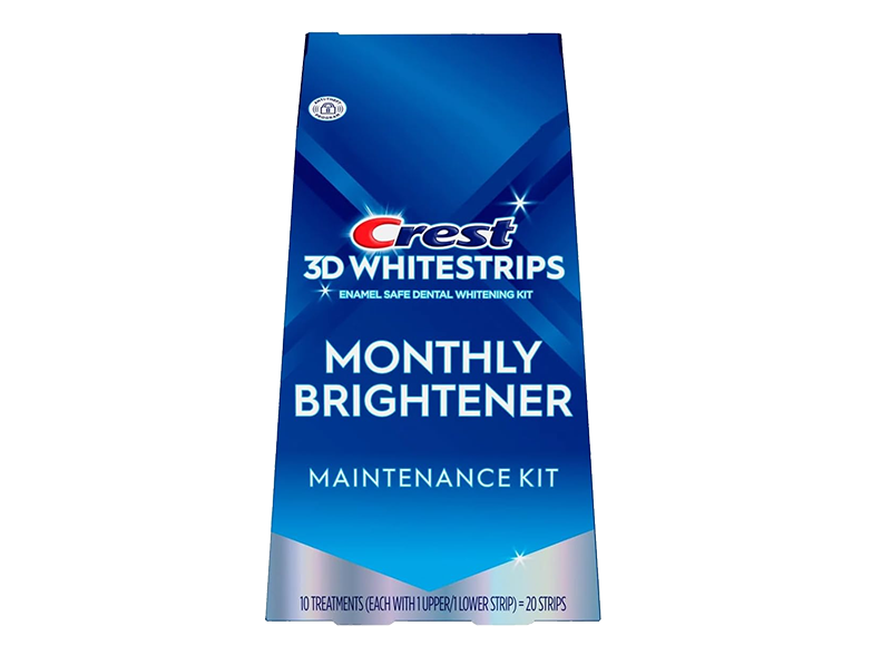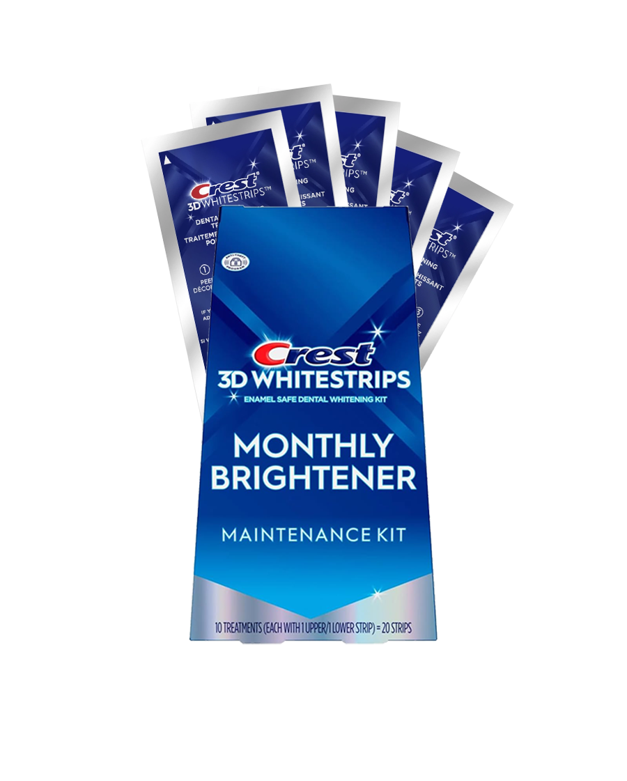 Crest Monthly Brightener este conceput exact pentru asta. Este un tratament de întreținere între tratamentele intensive de albire, cum ar fi Crest Professional Effects, Crest 1 Hour Express sau benzile Crest Professional Transformation.